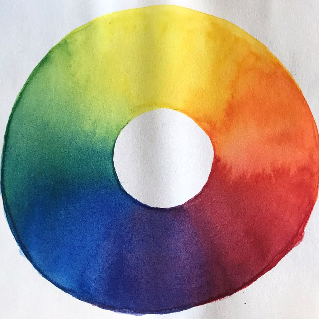 De flesta är kanske bekanta med färgcirkeln? Det finns flera varianter men den vanligaste i samband med målning består av grundfärgerna/primärfärgerna gult, rött och blått i en trekant och emellan dem sekundärfärgerna orange, grönt och lila. De sistnämnda blandas av de två primärfärgerna på vardera sida om. Gult och blått blir som bekant grönt; gult och rött blir orange och rött och blått blir lila.